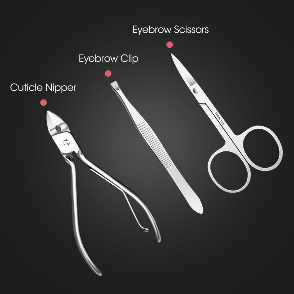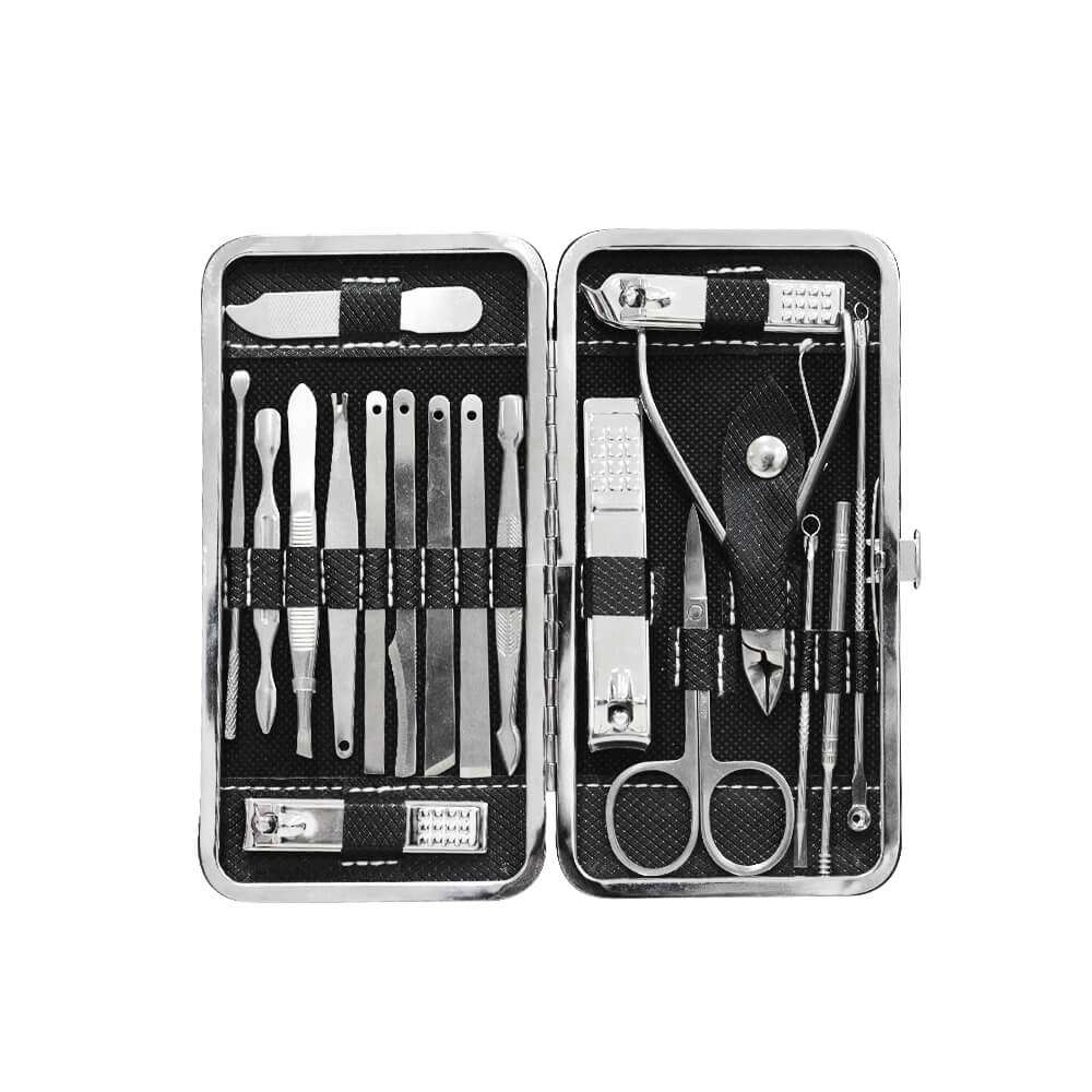 - Multiple Function 18 IN 1 Grooming Kit for Manicures, Pedicures, Eyebrow Shaping, Anti-Acne, Exfoliating, etc.