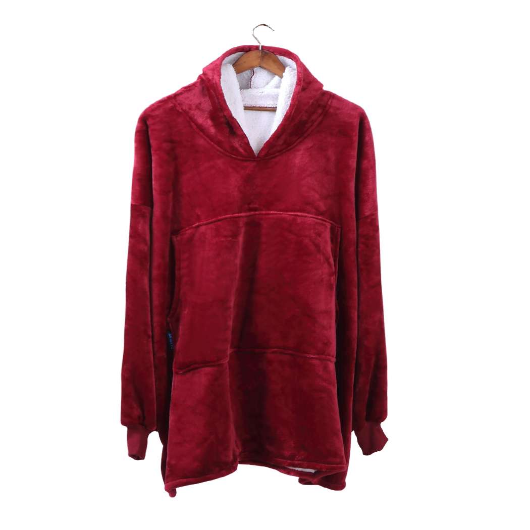 2 Pcs DreamZ Plush Fleece Sherpa Hoodie Sweatshirt Huggle Blanket Pajamas Red