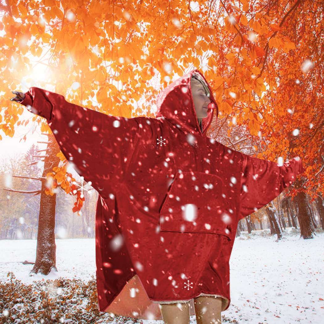 It is made of extra-soft flannel and the inside is made of premium fleece material. The large Hoodies keeps you warm always. Features an oversized hood to keep your head warm and comfortable, and a large, wide pocket to keep your needs wherever you are. It is suitable for families, offices, dormitories, shopping errands, trailing, camping and more. You can carry it anywhere you want! It is even reversible!! Just slipping it, the chill disappeared! Children will love it too!
