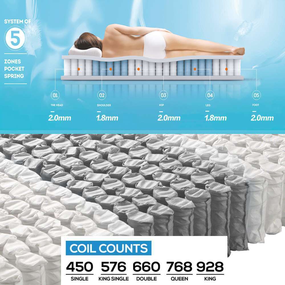 - 5 zoned pocket springs – Different level of support