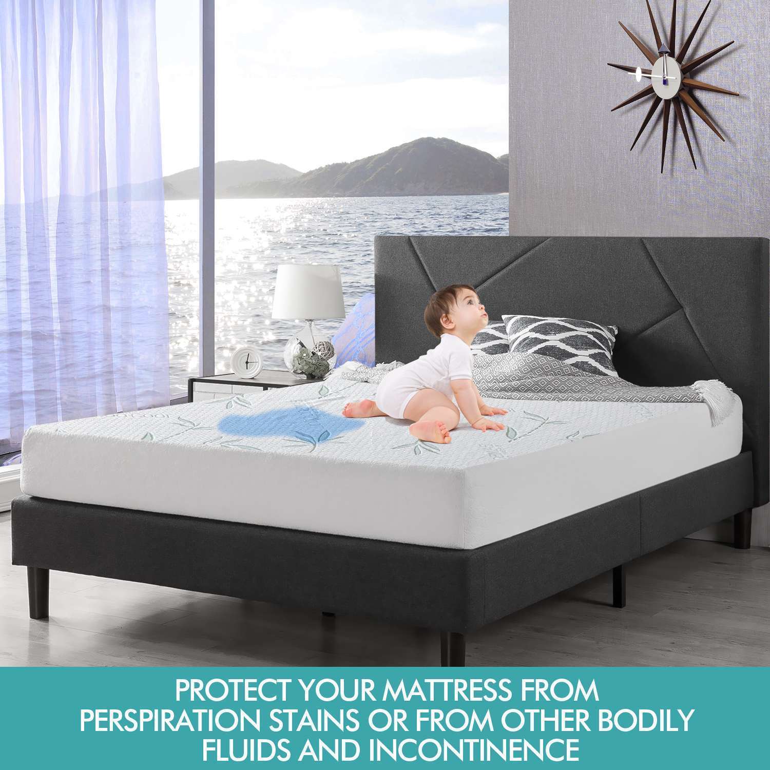 This cover protects your mattress from dust mites, allergens, and the surprising amount of skin flakes and body fluid that you lose every night, keeping your mattress clean and comfy for years to come.