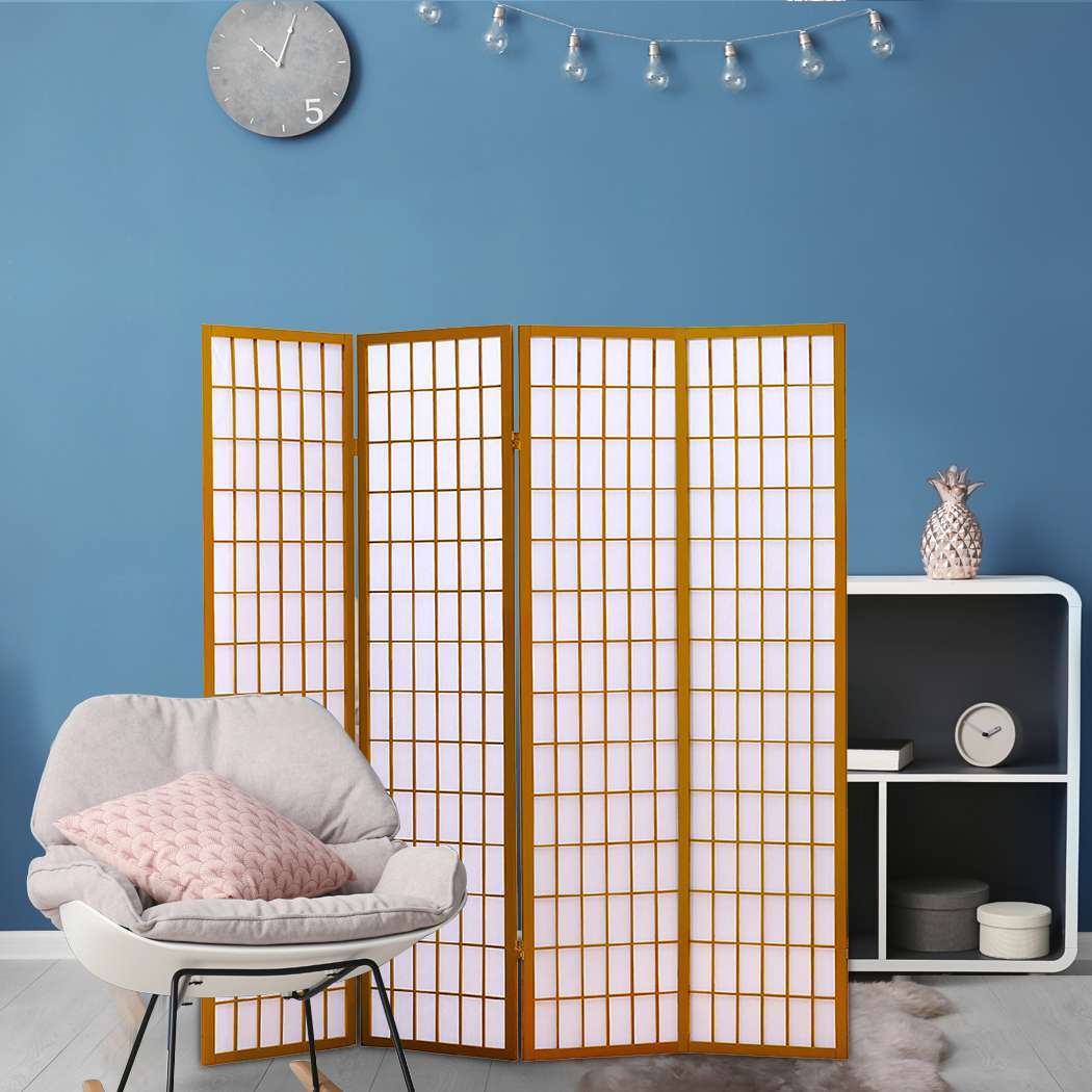 Levede 4 Panel Free Standing Foldable Room Divider Privacy Screen Wood Frame