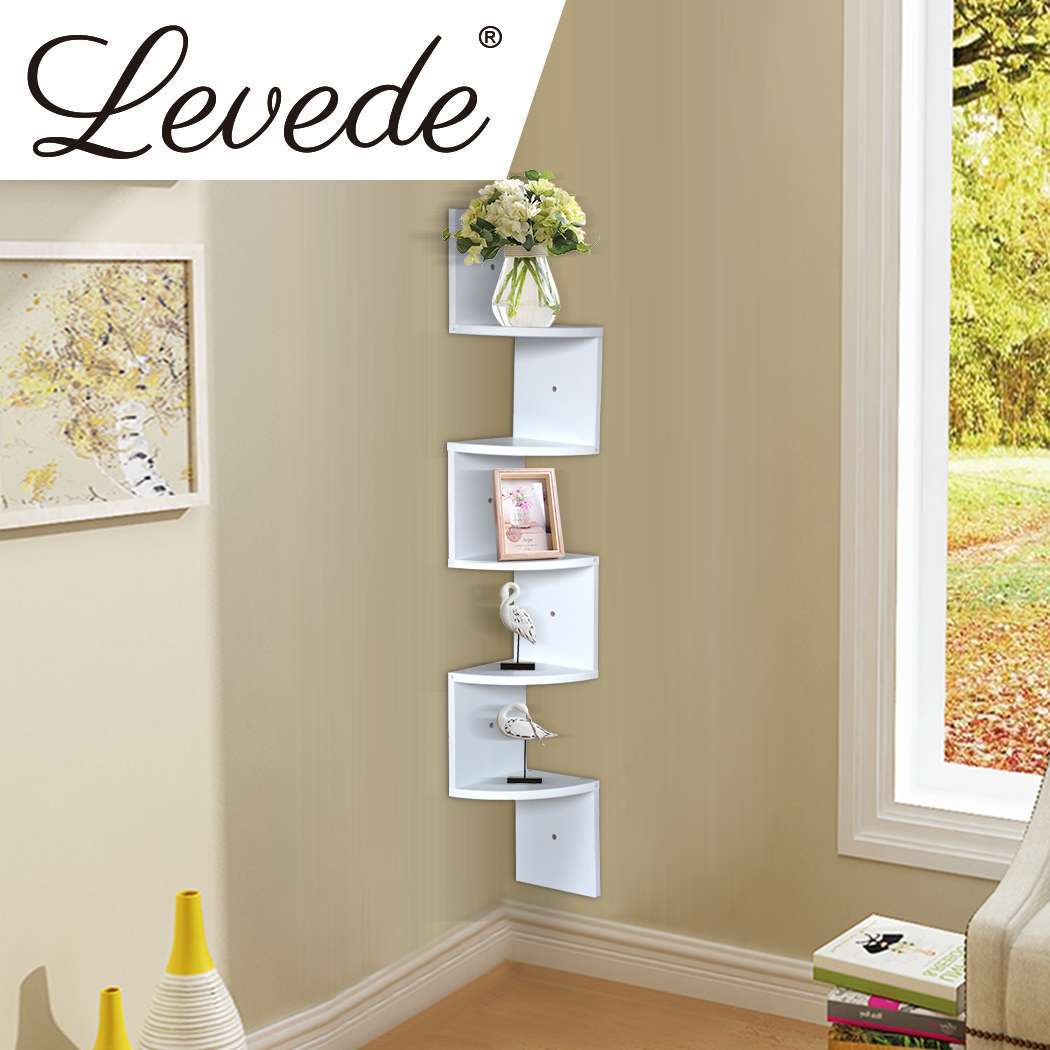 Levede 5 Tier Corner Wall Shelf Display Shelves DVD CD Storage Zig-tag Rack