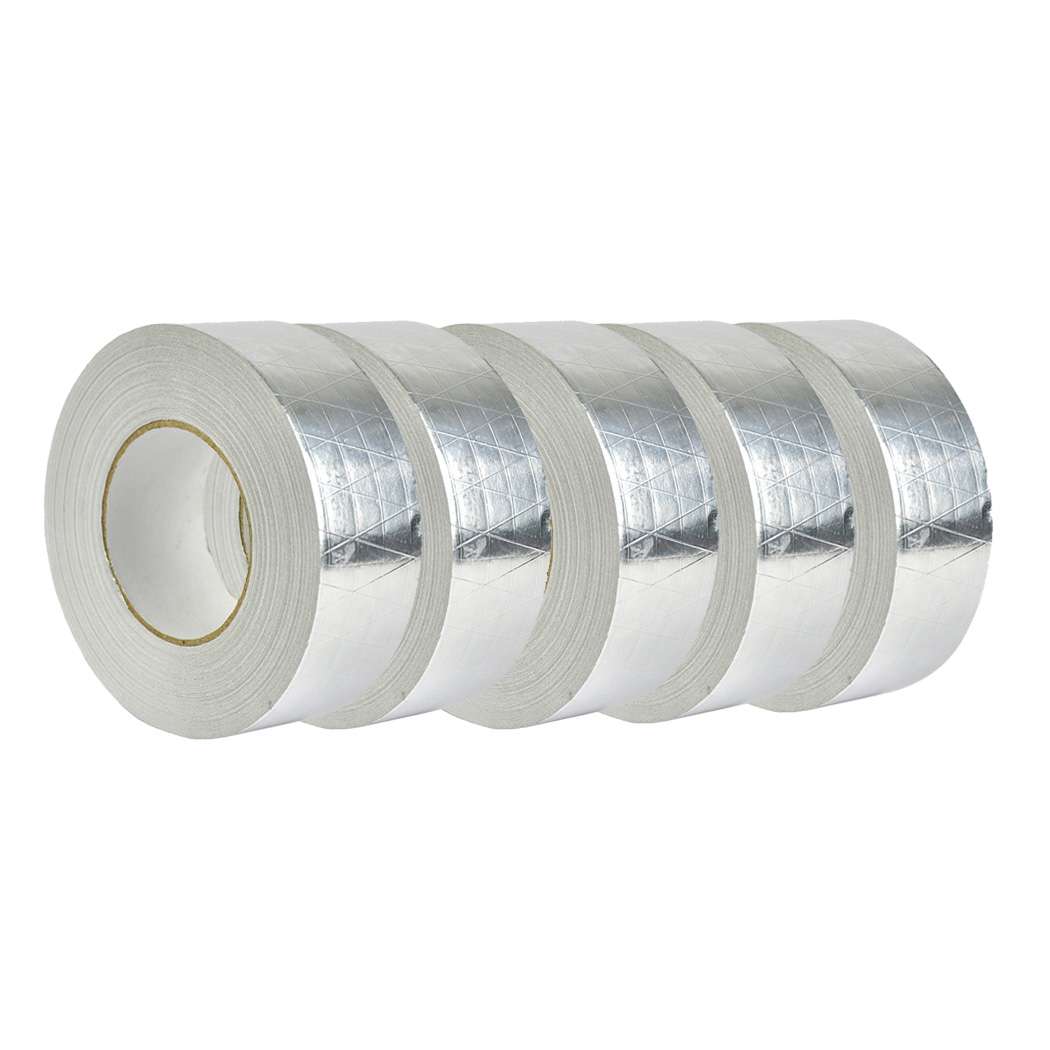 Reinforced Aluminium Foil Tape Insulation Heating Duct Silver 50mm x 50M 5 Pack